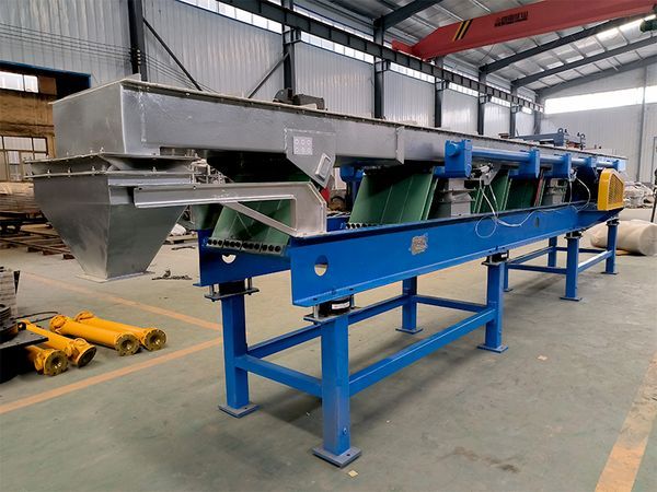 平衡型輸送機,通過電機的曲柄運動和彈簧的共振運動使上下槽體振動,可以完成輸送、烘干、冷卻、剝離、篩選、脫水、定向和多點分配; 輸送槽體寬度從 150毫米到 2米不等,長度可達 30米。特點:1)平衡型,振動不會傳遞到安裝底座。因此,也可以安裝在高框架上。另外,如果地基是實心的,比如混凝土,可以不安裝防振彈簧,降低整體高度;2)料槽中間可設數個“傾卸”出口,使被輸送的物料可從任一出口卸出。3)配備變速裝置,可在工作過程中調節流量。4) ABM型可實現上下槽可同時輸送物料。           5)節能、低維護和長期可靠性;聯系我們,了解有關偏心連桿平衡振動輸送機的更多信息。